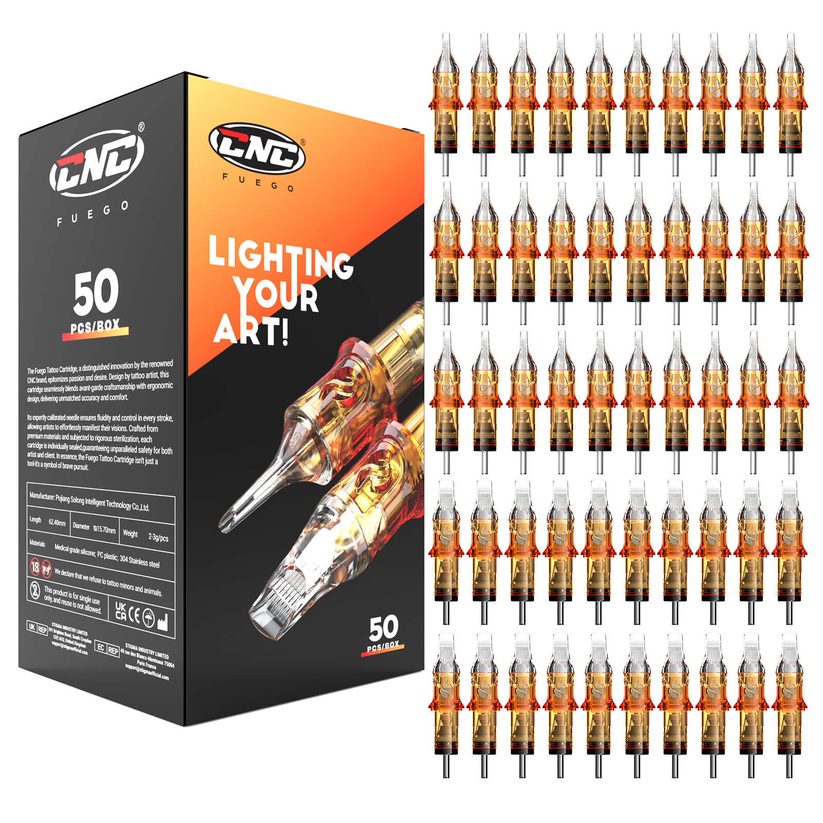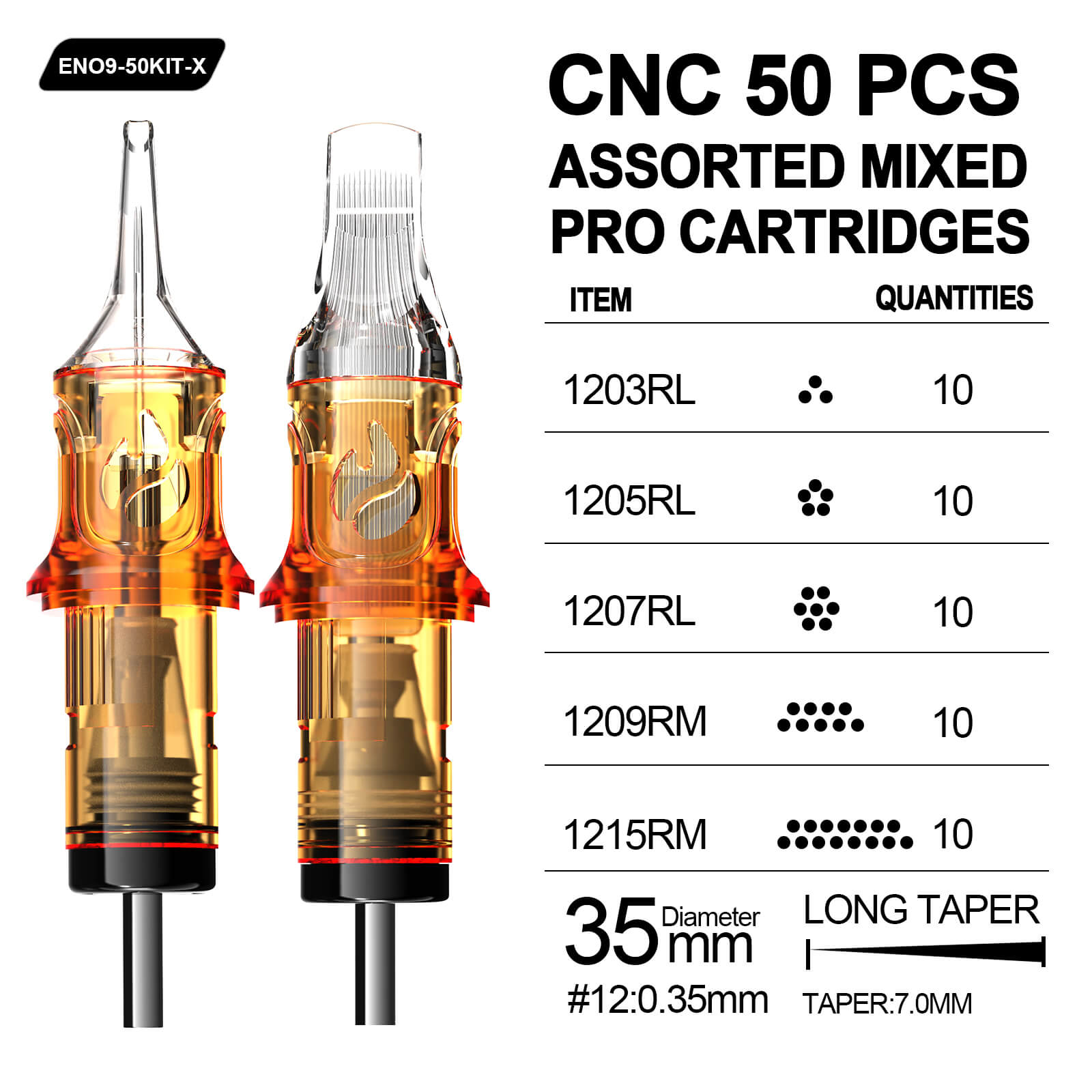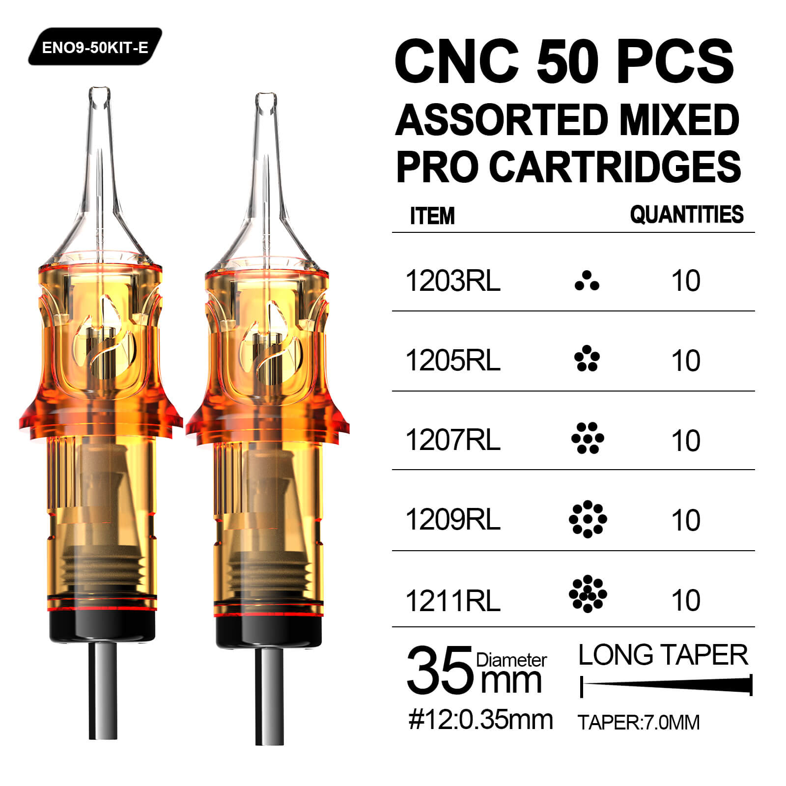 So far I’ve inspected 2 of each gauge and have found them all to be sharp, centered and free of barbs or imperfections that make some brand of cart manufacturers so disappointing. I’m excited to start working on a small cover up tattoo on my left hand that turned out HORRIBLY after a lot of carts from another well known budget brand that begins with Worm, ends with ole. I was horrified at the quality they provided knowing their product is indented for use on live human skin. These are a complete 180 from those. They came in a box of 50, 10x RL3, 5, 7, 9, and 11. I do wish I would’ve paid closer attention to the grouping I chose because I am running low on round shaders and would’ve liked a few smaller mags as well. But these will do fine and if you are not in a rush and practice at it, you can shade just fine with the liners if you run at around 8v and use a tight circling pattern, just keep a slow consistent pace as you go. I’ve posted a pic of what my unfinished tattoo looks like right now, I had to stop before finishing because the last carts I mentioned above were just that bad and opted to wait until I got something better. Once I’ve worked my magic and salvaged the design I will post the after pic and give a little more insight on how the carts performed.